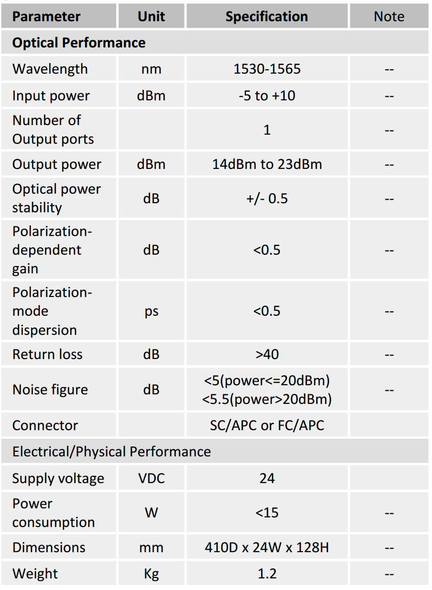 Headend system. With a highly reliable single or double 980nm Pump Laser,low noise figure, and a wide range of optical output powers (14dBm to