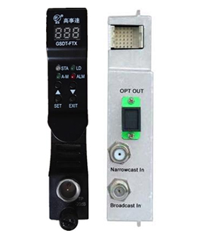 GSDT-FTX光發(fā)射機模塊是專門為現(xiàn)在和將來之HFC及FTTH應(yīng)用而設(shè)計的1310nm直調(diào)光發(fā)射機。發(fā)射機使用高性能制冷型1310nm DFB光源,采用先進(jìn)的預(yù)失真電路,使系統(tǒng)具有良好的CTB和CSO特性,其嵌入式單片機處理電路監(jiān)測和控制所有的參數(shù)狀態(tài)及遠(yuǎn)程通信,可以通過訪問前面板之LED或EMS設(shè)備管理模塊來獲取這些參數(shù)信息。